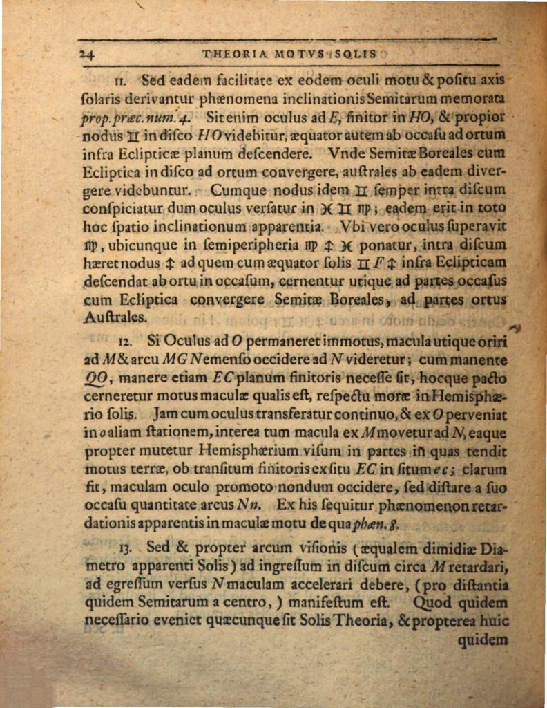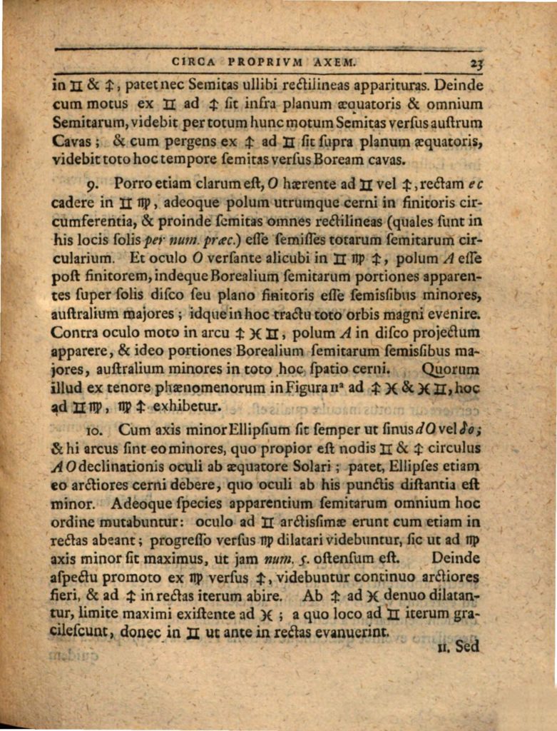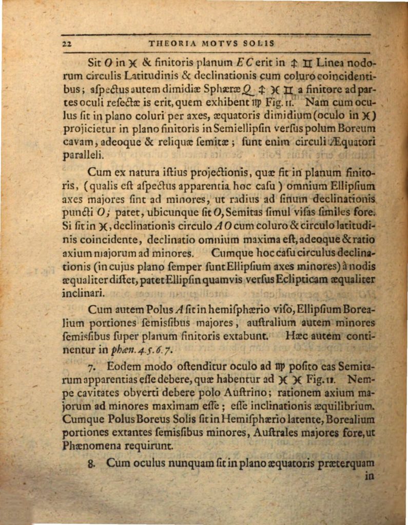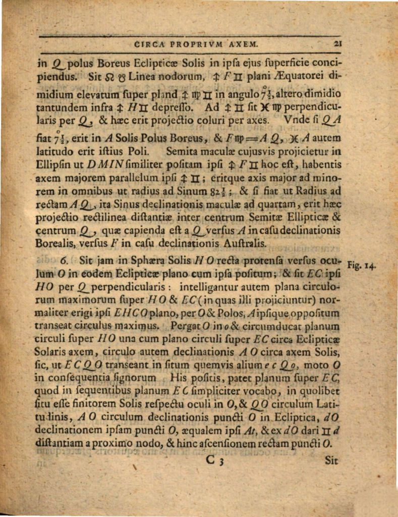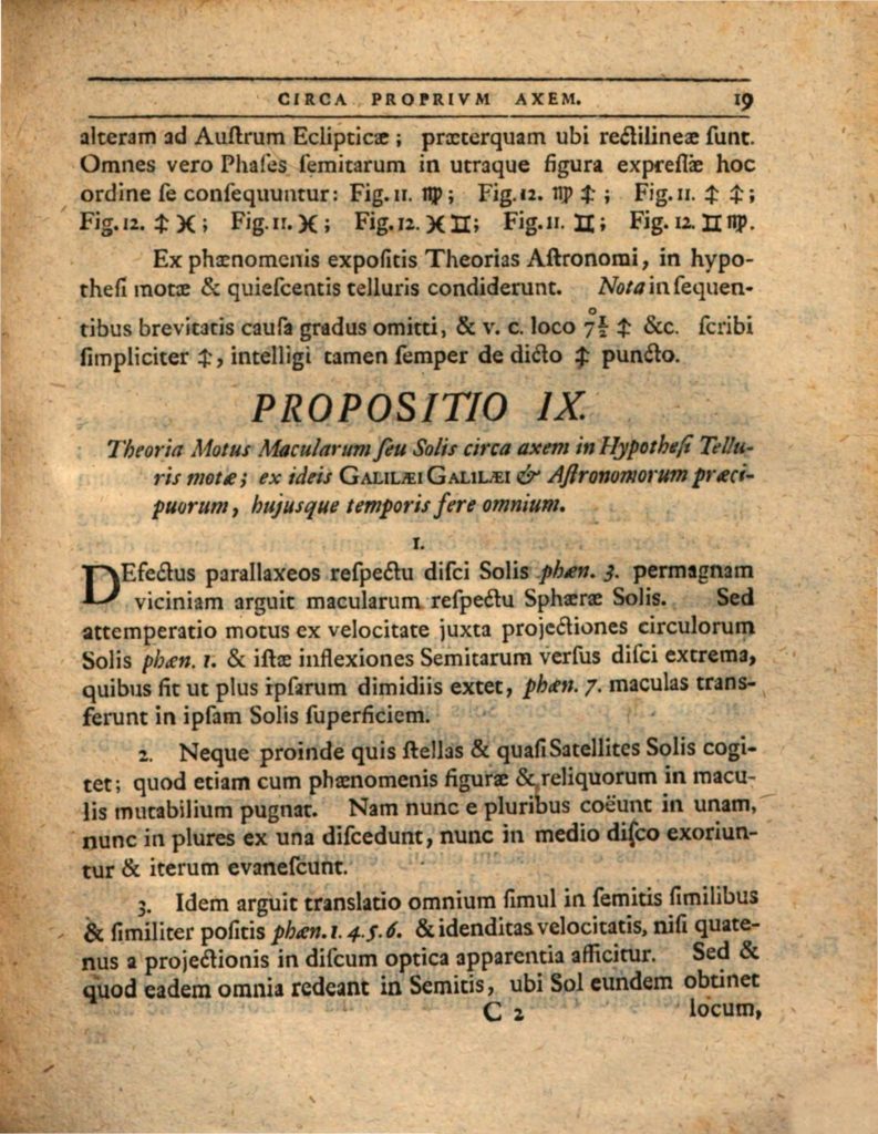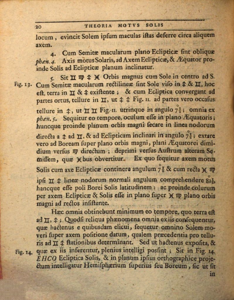 Berekening van de hellingsgraad van de as van de zon, op grond van de waarneming van de beweging van de zonnevlekken. Jammer genoeg heeft googlebooks het uitvouwblad met de tekeningen (figuren) niet goed gekopieerd. Onder de afbeeldingen een samenvatting. Het is de hoofdstelling van deze dissertatie (IX), p. 19 t/m 25.