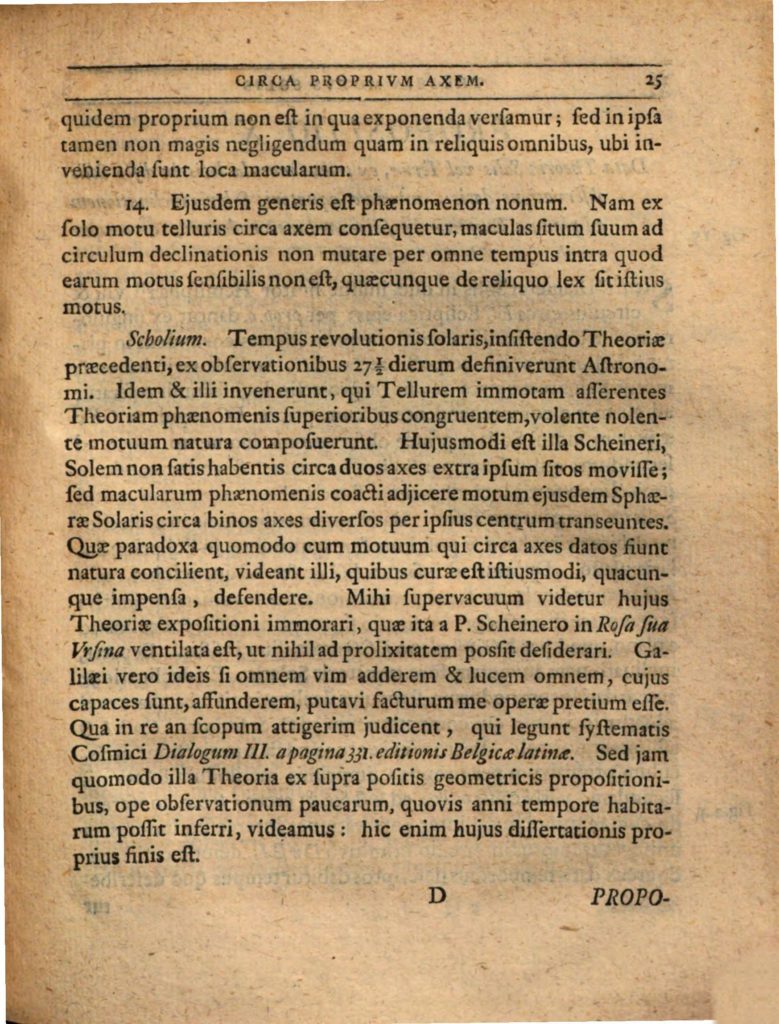 • Christoph Scheiner: De auteur noemt Scheiners beroemde werk Rosa Ursina. Hij prijst Scheiner, maar wijst erop dat zijn eigen wiskundige methode nauwkeuriger is.