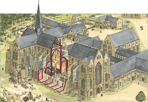 Arnulf maakt dus mee hoe de broeders toestromen en de eenvoudige Romaanse kerk, refter en slaapzaal (en watermolen: geen klooster zonder eigen energievoorziening!) wordt uit/omgebouwd tot de gothische kerk en de indrukwekkende abdij, waarvan u vandaag de ruïnes nog kunt zien nabij het stadje dat door de pioniersactiviteit van de monniken bij het klooster ontstond: Villers-la-ville. Arnulf legt in in 1248 het ambt van abt neer om zich te wijden aan zijn studies. Het ‘management’ (wat een belangrijk deel is van de taak van een abt) leidde hem klaarblijkelijk teveel af van waar zijn hart klopte: het contemplatieve leven: de meditatie van de mysteriën van het geloof. Hij overlijdt wrsch. niet lang nadien. Van hem is één werk bekend: Excerptum Speculi Caritatis (over de liefde, in ‘t kort), een strofische bewerking van een theologisch werk van Raymond de Peñafort, Summa Causum. De Latijnse Chronica beschrijft zowel zijn intrede als adolescent, als zijn toch wel onverwachte roeping tot abt. Hij wordt beschreven als een schone jongeling, en een vroom man, die zich verzette tegen uiterlijk vertoon. Gericht op de innerlijke, spirituele opbouw van de gemeenschap.1. Sinds 20ste eeuw wordt hem een voornaam dichtwerk toegeschreven, dat tot dan toe op naam van de Bernard van Clairvaux had gestaan: een strofisch gebed waarin de bidder stilstaat bij het lijden van Christus, middels een meditatie over hoezeer zijn lichaam in elk van z’n delen (ledematen) moest lijden aan het kruis. In het Latijn: Beati Patris Bernhardi Rhytmica oratio ad unum quodlibet membrorum Christi patientis et a cruce pendentis. Het eerste couplet groet Christus als redder der wereld: Salve mundi salutare, en daarna beschouwt de bidder alle getroffen lichaamsdelen afzonderlijk. Als laatste: het hoofd, vol bloed en wonden… (in het Latijn dus). In de 13de eeuw was deze gebedscyclus een gedicht vol nieuwe gedachten. Niet alleen komt Christus als mens centraal te staan, en dan in het bijzonder als mens die ècht geleden heeft: ‘de man van smarten’. Totdantoe werd toch vooral gefocust op Christus als goddelijke persoon, die onder al dat lijden souverein ‘in control’ bleef. Deze aandacht voor de menselijke kant van de God-mens, deelde Bernard van Clairvaux overigens met die andere dwarse kerkvader: Francesco van Assisi. Ook redelijk nieuw (typisch voor de spiritualiteit van Bernardus, de Cisterciënzers) is de persoonlijke, meditatieve, intro-spectieve toon. Hier de opbouw van de oratio rhytimica (metrisch gebed).